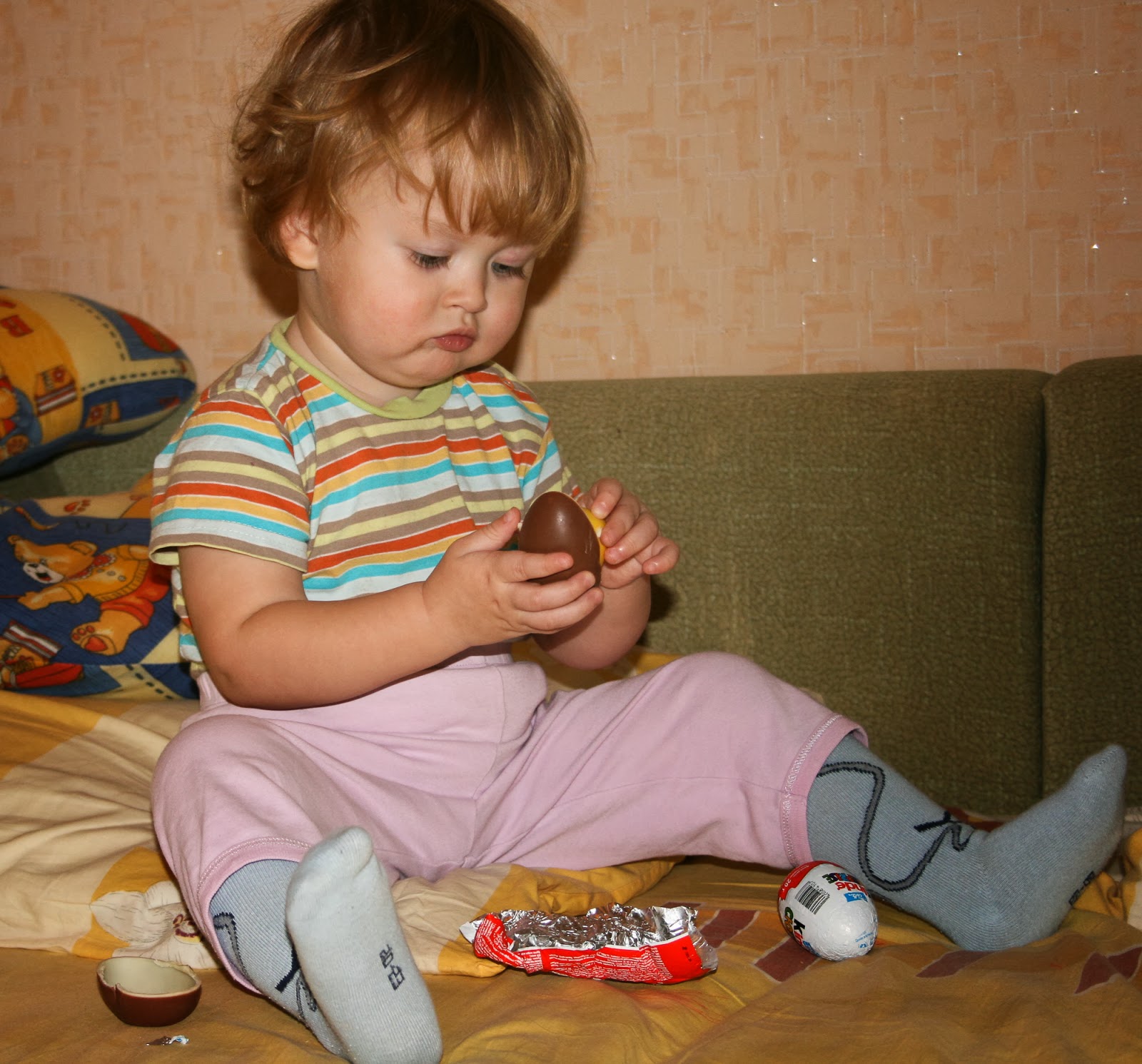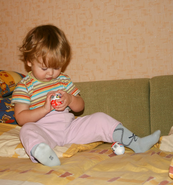 И даже вся прелесть не в том, что Гриша хочет имено сладкого, а в том, что ему нравится сам факт дарения подарков. Нравится с ними ходить по дому, потом долго разворачивать, играть и т.д. Вот такие у нас «Кати!».