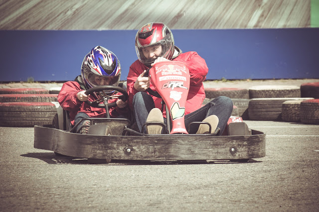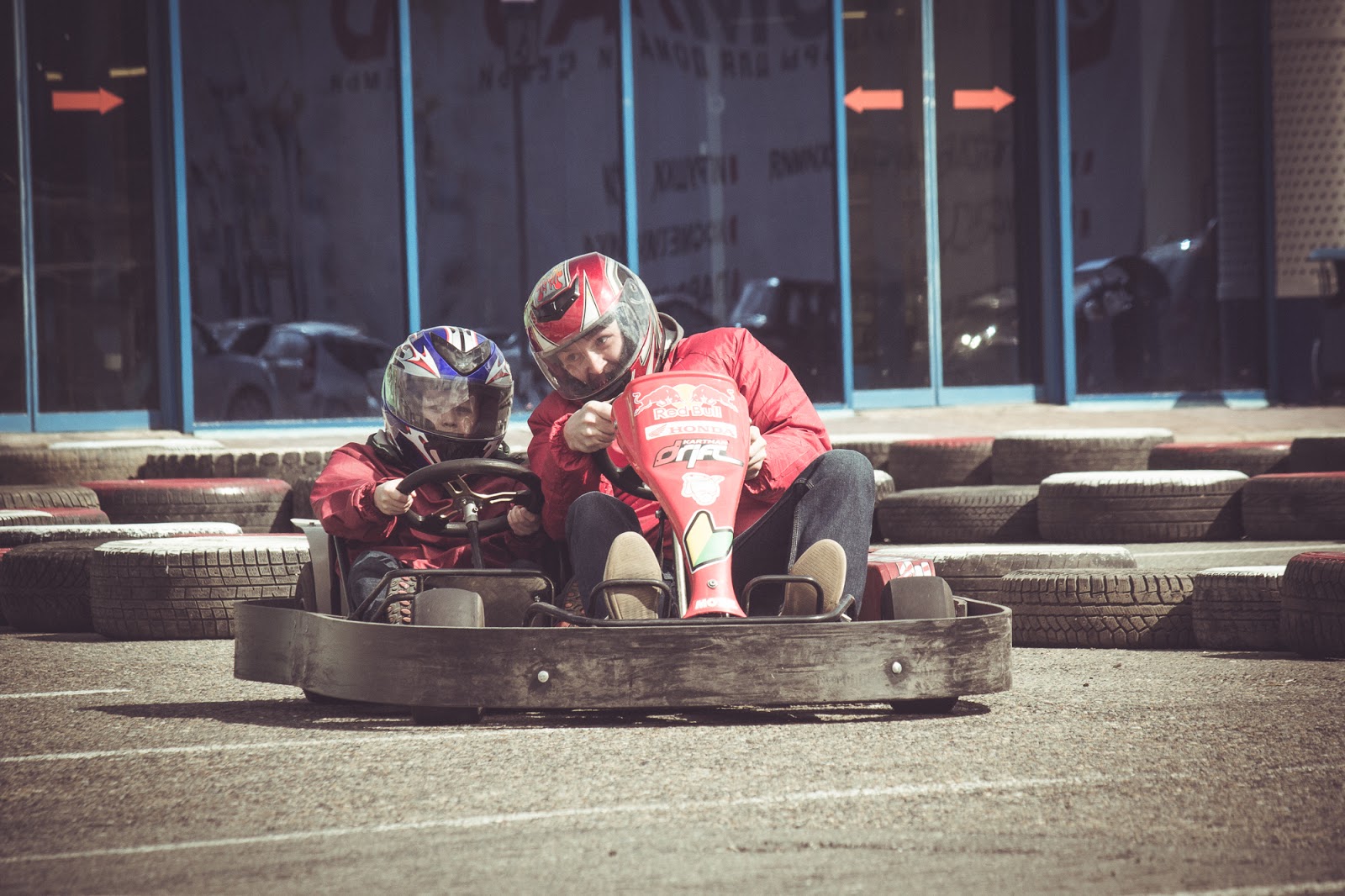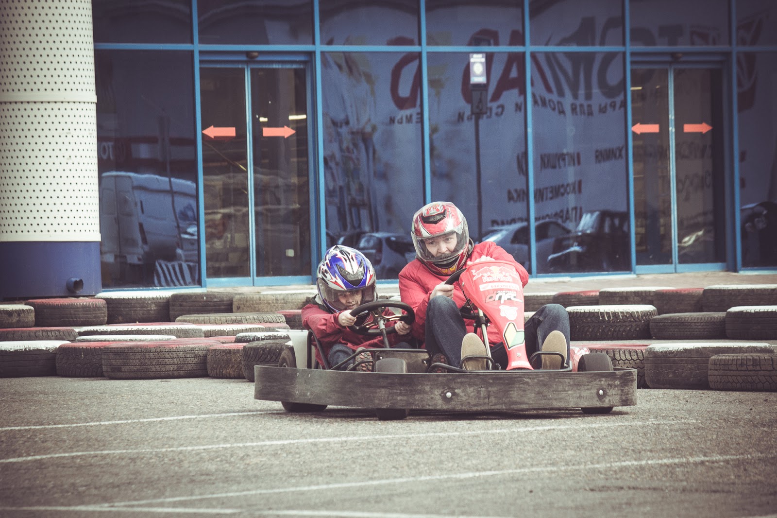 | На выходных Гриша с папой катался на карте. Это было круто! Первый раз гнали так, что отвалилось колесо. На следующий день прошли все круги без потерь. |